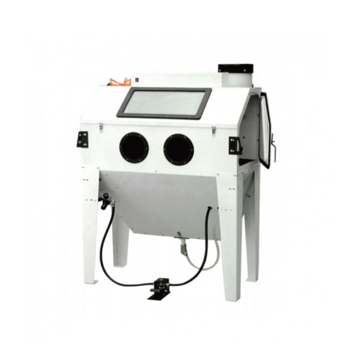 Επαγγελματική καμπίνα αμμοβολής με 2 πλαϊνά πορτάκια, ανοιγόμενη πάνω θυρίδα(καπάκι) και εσωτερικό φώς.