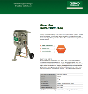 Αρχική σελίδα Εξοπλισμός Αμμοβολής Clemco SCW-1628 40lt